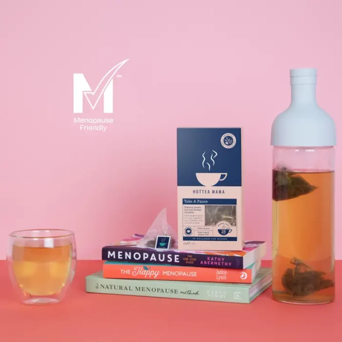 Steamed sencha green tea, raspberry leaf, ginseng, valerian root and liquorice root and sage, have been shown in small scale studies to help reduce hot flushes, ease anxiety, aid sleep, protect bone health and improve memory and cognitive function.